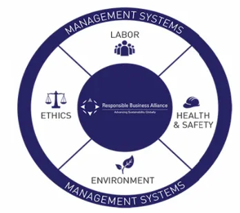 Responsible Business Alliance(RBA)는 전자산업의 공급망에서 기업의 사회적 책임을 증진시키기 위해 2004년 설립된 글로벌 비영리 기구이다. RBA는 노동, 건강과 안전, 환경, 윤리에 대한 가이드라인을 마련하고, 가이드라인 준수 여부를 평가하기 위한 진단 및 평가 프로그램을 운영한다. RBA 가이드라인을 준수하는 기업에게 RBA 회원 자격을 부여하고, 회원사들은 지속적인 개선을 위한 교육, 자문, 워크숍 등을 받을 수 있습니다.