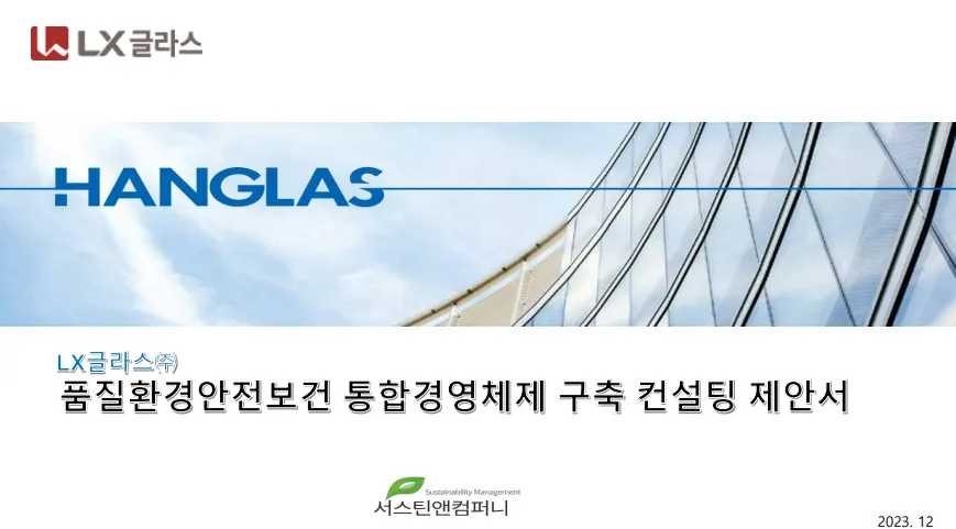 LX글라스 군산 및 울산공장에 대한 ISO 9001,14001 & 45001 통합경영체제에 대한 컨설팅 계약되었습니다.